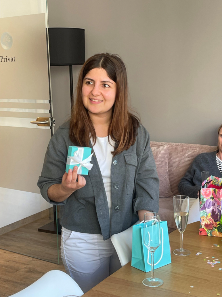 Dilshoda ist überglücklich über ihren Abschluss, und das völlig zu Recht. Mit viel Engagement, Lernbereitschaft und Herz hat sie ihre ZFA-Ausbildung in unserer Praxis gemeistert und sich zu einer wertvollen Unterstützung für unser gesamtes zahnärztliches Team entwickelt.